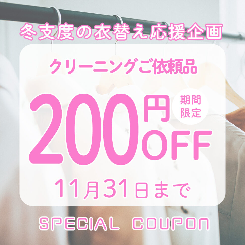 ただいま、LINE会員さま限定でクリーニング衣類を200円引きでご提供する特別キャンペーンを実施中です。